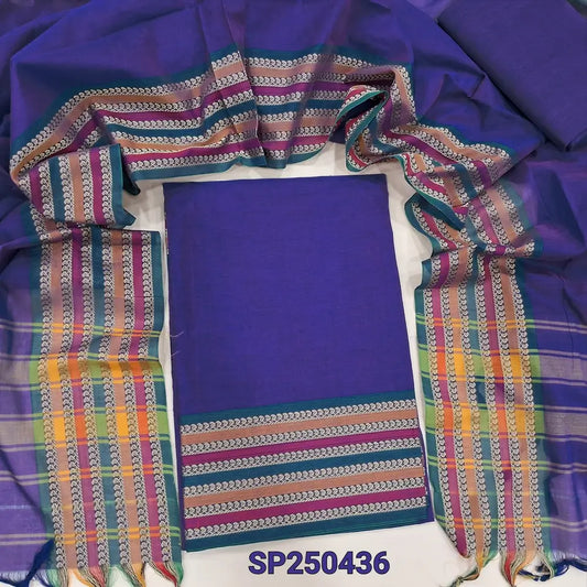 Purple south handloom cotton unstitched salwar material (lining optional) kalamkari print cotton bottom, kalamkari print cotton dupatta. NV253004 (over lapping of prints not consider as a defect)
