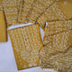 Bandhini printed mehandhi Yellow soft cotton unstitched salwar material (lining needed) thread, faux mirror work on front, matching spun cotton bottom, printed soft mul cotton dupatta(TAPING NEEDED) FB260213