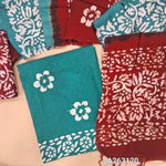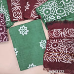 Batik dyed Turquoise Green soft jakard cotton unstitched salwar material (lining needed) batik design allover, batik dyed dark maroon cotton bottom, wax batik dyed dual shaded silk cotton dupatta.(TAPING NEEDED) JA263119