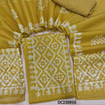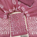 Purple kota silk cotton unstitched salwar material (thin, lining needed) batik print allover, sequins, faux mirror work on yoke, matching silky bottom and lining included, batik print kota silk cotton dupatta. DC250914