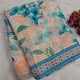 CODE WS719 : Beige and blue base fancy silk cotton saree with beautiful floral digital prints, thin gold zari lines ,thread and sequence detailing all over(thin and light weight) short printed pallu and running printed blouse.