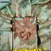 Beige designer digital printed silk cotton unstitched salwar material, rich bead& zardozi work on front(thin, lining needed)matching santoon bottom, digital printed silk cotton dupatta with gold tissue borders. CODE AG250504
