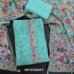Beige digital printed premium linen unstitched salwar material, kantha stitch& sequins work on yoke& daman(thin fabric, lining needed)matching lining provided, NO BOTTOM, digital printed pure linen dupatta with heavy hand embroidered. CODE MY250610