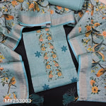 Light beige digital printed tissue silk cotton unstitched salwar material, thread& faux mirror work on yoke& front(thin, lining needed)matching santoon bottom, digital printed tissue silk cotton dupatta with tissue borders. CODE MY253002