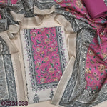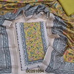 Light Beige fancy semi gicha unstitched salwar material(textured, lining needed)printed all over, powder blue floral printed on yoke, powder blue silk cotton bottom, floral printed semi gicha dupatta. OC251035