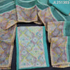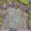 Rich beige silk cotton unstitched salwar material, organza yoke patch with thread& bead work(thin, lining needed)matching spun cotton bottom, fancy organza dupatta with crochet lace work& fancy lace tapings. CODE JL251305