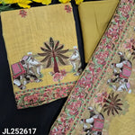 Light beige silk cotton unstitched salwar material, rich thread weaving design on front(thin, lining needed)matching spun bottom, silk cotton dupatta with rich thread weaving design. CODE JL252618