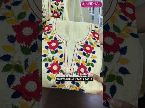 Rich beige with golden tint soft tissue kota silk cotton unstitched salwar material, rich embroidery on yoke(thin, lining needed)matching spun cotton bottom, tissue kota silk cotton dupatta with banarasi zari woven borders. CODE AG252002