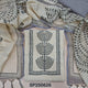 Rich beige with golden tint tissue linen unstitched salwar material, rich hand embroidered on yoke(thin, lining needed)green santoon bottom, rich hand embroidered tissue linen full length dupatta. CODE SP250625