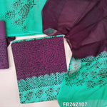 Beige & turquoise green hand block printed cotton unstitched salwar material (lining needed)faux mirror on front,cotton bottom, dual shaded block printed pure chiffon dupatta TAPING NEEDED(over lapping of prints not consider as a defect. FB262105