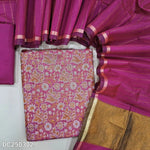 Benarasi woven Maroon soft silk cotton unstitched salwar material(lining needed) heavy benarasi woven design allover, matching silk cotton bottom, zari lines on silk cotton dupatta with copper tissue pallu & tassels. DC250304