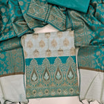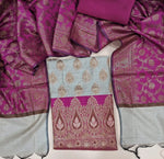 Grey with maroon benarasi silk cotton unstitched salwar material, rich antique zari weaving all over (Lining Needed) rani pink silk cotton Bottom, Benarasi Zari Woven Dual Shaded Dupatta. OC252515