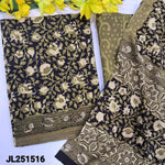 Black base rust orange hand block printed pure cotton unstitched salwar material(lining needed)block printed cotton bottom, hand block printed pure mul cotton full length dupatta(REQUIRES TAPINGS). CODE JL251517