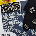 Black original batik dyed pure crepe georgette unstitched salwar material(thin fabric, lining needed)dark blue daman, dark blue silky bottom, pure crepe georgette dupatta with batik design. CODE NV241810