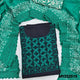 Black chikankari embroidered pure cotton unstitched salwar material, hand embroidered& sequins work on yoke(lining optional)turquoise green wax batik dyed cotton bottom, wax batik dyed mul cotton full length dupatta with cut work edges. CODE MY252519