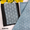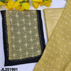 Black fancy crinkled silk cotton unstitched salwar material, netted yoke patch with lace work(lining needed)sage green silky bottom, self embroidered super net full length dupatta. CODE JL251915