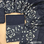 Black fancy kota silk cotton unstitched salwar material (lining needed) applique work on daman, small embroidery work on front, matching silky bottom & lining provided, applique work on kota silk cotton dupatta. DC251721