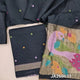Black jamdani woven fancy silk cotton unstitched salwar material (lining needed) jamdani woven buttas on front, matching silk cotton bottom, silk cotton dupatta with gold tissue with peacock weaving pallu.(TAPING NEEDED) JA260611