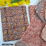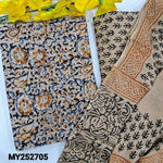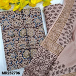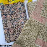 Black kalamkari hand block printed pure cotton unstitched salwar material(lining optional)hand block printed cotton bottom, block printed pure soft cotton full length dupatta(REQUIRES TAPINGS). CODE MY252705
