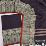 Black mercerised handloom cotton unstitched salwar material, double side borders (Thin, Lining Needed) Fabric Measurement : 4.5 Meters, Full length dupatta. Note : Weaving Inconsistencies are not defects. NV252610