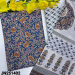 Black base printed pure cotton unstitched salwar material(lining optional)floral printed cotton bottom, printed pure cotton full length dupatta. CODE JN251405