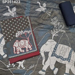 Black satin cotton unstitched salwar material, Elephant weaving yoke with thread work(lining optional)maroon cotton bottom, soft tissue silk dupatta with zari &thread woven design. SP251423