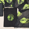 Black shibori dyed crepe georgette unstitched salwar material, hand crochet work and shibori dyed on yoke(YELLOW)(lining needed)santoon bottom, shibori dyed premium chiffon dupatta. AP262310