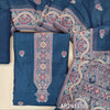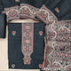 Black silk cotton unstitched salwar material, floral buttas on front,thread weaving design on yoke and daman, (Silky, Lining Needed) silky bottom,buttas on silk cotton dupatta with rich thread weaving on pallu and borders. AP261314