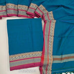 Black south mercerized handloom cotton unstitched salwar material(thin, lining needed) with contrast traditional thread woven border, bottom included with top 4.5 metres, mercerized handloom cotton dupatta with tassels. Dc252204