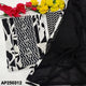 Black &white abstract printed soft cotton unstitched salwar material, sequins work on yoke(lining optional)zigzag printed cotton bottom, plain chiffon dupatta with printed tapings. CODE AP250312