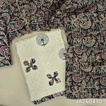 Block printed pastel Blue soft cotton unstitched salwar material (lining needed) applique, embroidery work on front, kalamkari print cotton bottom, kalamkari printed cotton dupatta(TAPING NEEDED). JA260409