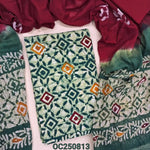 Blue original wax batik dyed pure cotton unstitched salwar material (lining optional), wax batik dyed pink cotton bottom, pure wax batik dyed dual shaded mul cotton dupatta(TAPINGS NEEDED). OC250814
