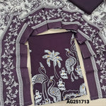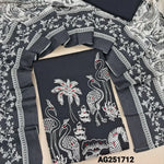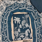 Dark blue digital printed satin cotton unstitched salwar material, thread work on front(lining optional)matching spun cotton bottom, printed pure cotton dupatta. CODE AG251714
