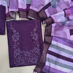 Dark Blue fancy crinkled silk cotton unstitched salwar material (thin, lining needed) bead, hand embroidery work on yoke, matching silky bottom, digital abstract printed silk cotton dupatta with tassels. DC250711