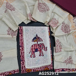 Dark blue original wax batik dyed kantha cotton unstitched salwar material, applique work on yoke(lining optional)matching cotton bottom, block printed pure cotton short width dupatta. CODE AG252910