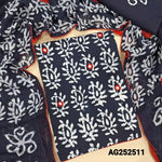 Dark blue original wax batik dyed pure cotton unstitched salwar material, thread& faux mirror work on front(lining optional)batik dyed pure cotton bottom, batik dyed pure cotton dupatta with embroidery work. CODE AG252510
