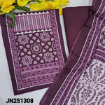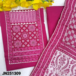 Blue premium soft cotton unstitched salwar material, printed yoke with kantha stitch& sequins work(lining needed)matching cotton bottom, printed pure mul cotton full length dupatta. CODE JN251307