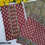 Dark blue printed pure soft cotton unstitched salwar material, potli buttons & faux mirror on yoke(lining optional)printed cotton bottom, printed pure soft mul cotton dupatta. CODE JN251707