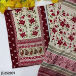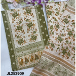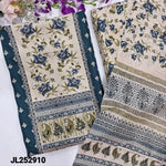 Dark blue printed soft cotton unstitched salwar material, thread& sequins work on yoke(lining needed)floral printed cotton bottom, printed soft cotton dupatta. CODE JL252910