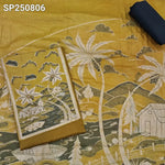 Light blue satin cotton unstitched salwar material, tissue silk yoke patch with real mirror& kantha stitch(lining optional)black cotton bottom, printed fancy tissue silk dupatta with zari weaving. CODE SP250807