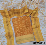 Dark blue warli printed pure soft cotton unstitched salwar material(lining needed)wari printed pure cotton bottom, warli printed pure cotton dupatta with zari woven borders. CODE SP250209