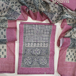 Blueish grey semi tussar unstitched salwar material, printed yoke patch with bead and embroidery detailing (Lightweight, Textured, Lining Needed) Matching santoon bottom, printed semi tussar dupatta. SP252117