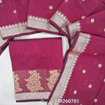 Bright maroon fancy silk cotton unstitched salwar material,golden thread weaving daman border, (lining needed)NO BOTTOM,weaving buttas on fancy sik cotton dupatta with thread woven borders. MR260705
