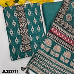 Dark brown digital printed silk cotton unstitched salwar material, kantha stitch work on yoke& daman(thin, lining needed)matching santoon bottom, digital printed silk cotton dupatta with rich hand embroidered. CODE JL252712