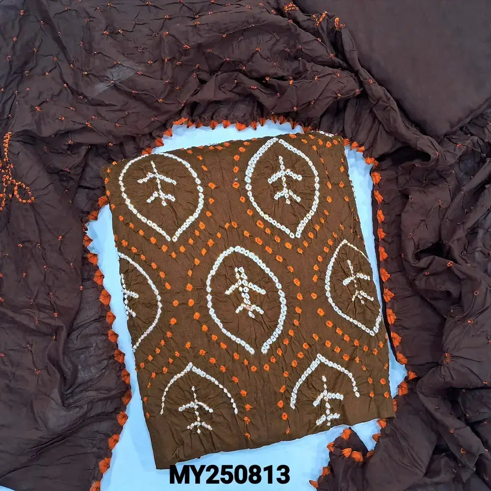 Light brown origninal bandhini dyed pure cotton unstitched salwar material(lining needed)dark maroon cotton bottom, original bandhini dyed pure cotton dupatta(TAPINGS NEEDED). CODE MY250813