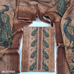 Light brown peacock digital printed semi linen unstitched salwar material, zardozi work on yoke& front(thin, lining needed)matching santoon bottom, digital printed semi linen dupatta. CODE JN251902