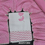 White chikankari embroidered pure cotton unstitched salwar material, applique work on yoke(lining needed)teal blue drum dyed thin cotton bottom, lehariya printed pure cotton dupatta with lace tapings. CODE AG251304