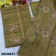 Mehandhi green floral printed semi tussar unstitched salwar material, thread& sequins work on yoke, self woven design all over(lining needed)matching silky bottom, floral printed semi tussar full length dupatta with tassels. CODE AG240521