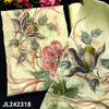 Light grey premium silk cotton unstitched salwar material, hand embroidered on yoke, zari buttas on front(thin fabric, lining needed)rich hand work on daman, floral printed matching santoon bottom, semi linen dupatta CODE JL242319