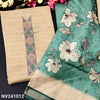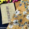 Beige sobar printed semi gicha unstitched salwar material, embroidered& real mirror work on yoke, self weaving design all over(lining needed)green santoon bottom, floral printed semi gicha dupatta with gold tissue borders. CODE NV241014